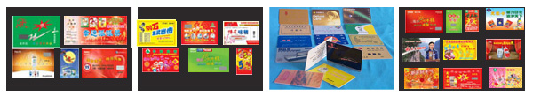 刮刮卡、紙卡、工作卡、會員卡、游戲卡、金銀卡、貴賓卡、 磁條卡、條碼卡等。